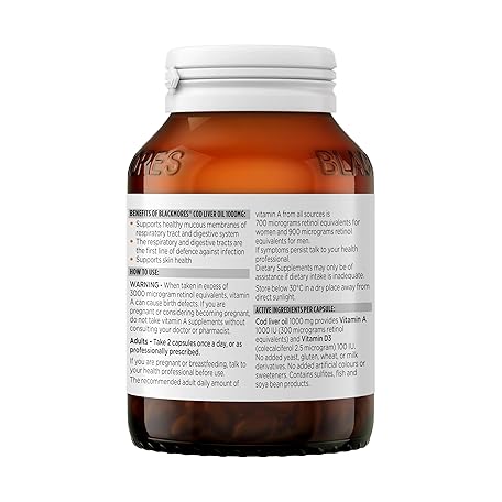 Thông tin sản phẩm Blackmores Cod Liver Oil 1000 mg 80 Capsules, Vitamin A + Vitamin D + Omega-3, Made in Australia