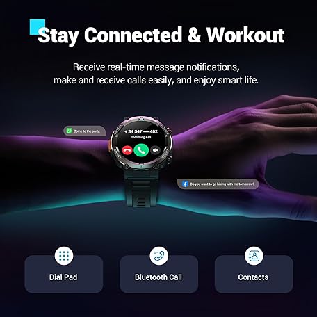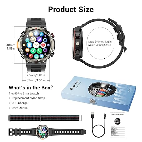 Thông tin sản phẩm Blackview Military Smart Watch for Men(Answer/Make Calls),Outdoor Smartwatch with 100 Days Battery/Flashlight/Compass/Heart Rate/SpO2/Sleep Monitor/2 Straps, Rugged Fitness Watch for iPhone/Android Phones