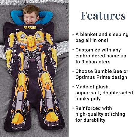 Thông tin sản phẩm Blankie Tails Personalized Bumblebee Transformer Blanket, Double Sided Soft Minky Fleece, Machine Washable Wearable Blanket - 59'' H x 23'' (Kids Ages 5-12)