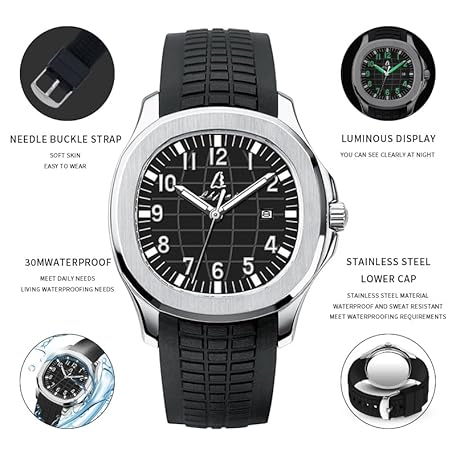 Thông tin sản phẩm Blekon Collections Men's 44mm Quartz Watch, Comfortable Silicone, Leather Strap, Luminous Hands & Numbers, Easy-Read Date Display, Sleek Round Dial – Perfect for Everyday Wear