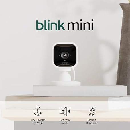 Thông tin sản phẩm Blink Mini - Compact indoor plug-in smart security camera, 1080p HD video, night vision, motion detection, two-way audio, easy set up, Works with Alexa – 2 cameras (White)