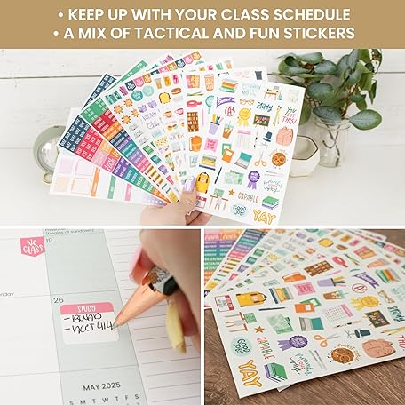 Thông tin sản phẩm bloom daily planners Student Planner Stickers - 8 Sheets / 672 Stickers - Essential School Themed Variety Pack for Academic Year Planning - Icons & Illustrations to Track Assignments, Exams, & More