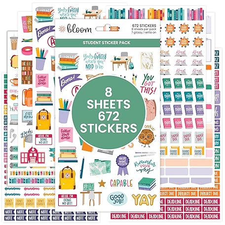 Sản phẩm bloom daily planners Student Planner Stickers - 8 Sheets / 672 Stickers - Essential School Themed Variety Pack for Academic Year Planning - Icons & Illustrations to Track Assignments, Exams, & More đang được bán với giá ưu đãi là $11.9355 tại nước Mỹ.