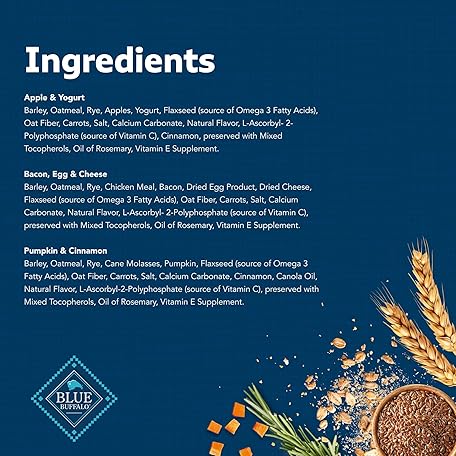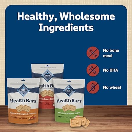 Thông tin sản phẩm Blue Buffalo Health Bars Crunchy Dog Biscuits, Variety Pack, Bacon, Egg & Cheese, Apple & Yogurt, Pumpkin & Cinnamon, 16-oz Bags