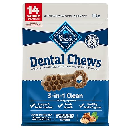 Sản phẩm Blue Buffalo Medium Dental Chews for Dogs, Daily Dental Care Dog Treats Made in the USA with Natural Ingredients, Chicken & Spearmint (14 Count) đang được bán với giá ưu đãi là $10.8891 tại nước Mỹ.