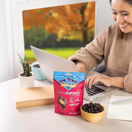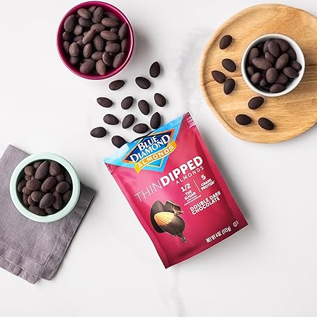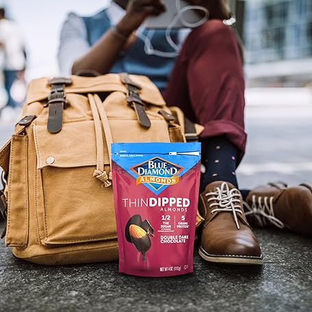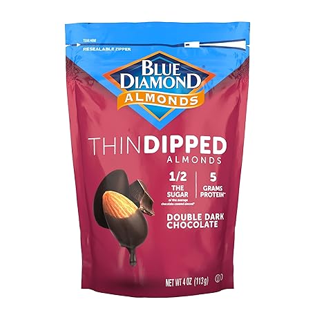 Thông tin sản phẩm Blue Diamond Almonds, Dark Chocolate Covered Thin Dipped Snack Nuts for Guilt-Free Snacking with Half the Sugar, Perfect for Gathering, Holidays, or Craving a Sweet Treat, 4oz. Resealable Bag