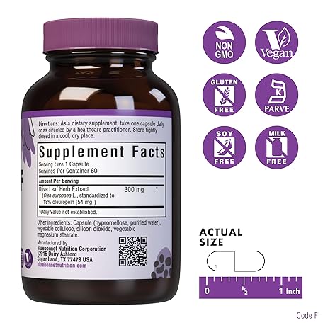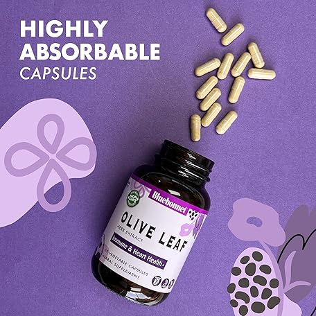 Thông tin sản phẩm BlueBonnet Nutrition Olive Leaf Herb Extract, Supports Immune Health*, Heart Health*, Gluten-Free, Soy-Free, Kosher Certified, Non-GMO, Vegan, 120 Vegetable Capsules, 120 Servings