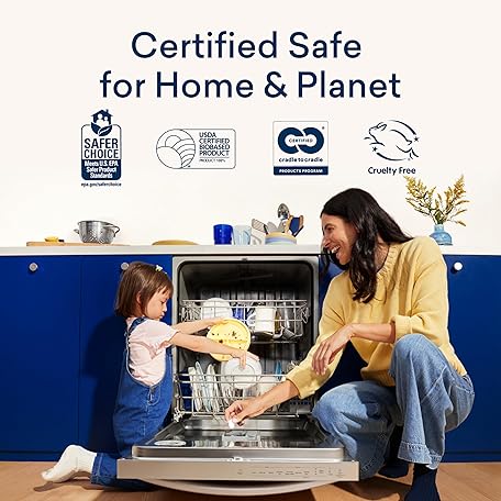 Thông tin sản phẩm BLUELAND 100% Plastic-Free Dishwasher Detergent Tablets, 60 Count, Free & Clear, Eco-Friendly Dishwashing Pods, Natural, USDA Certified biobased