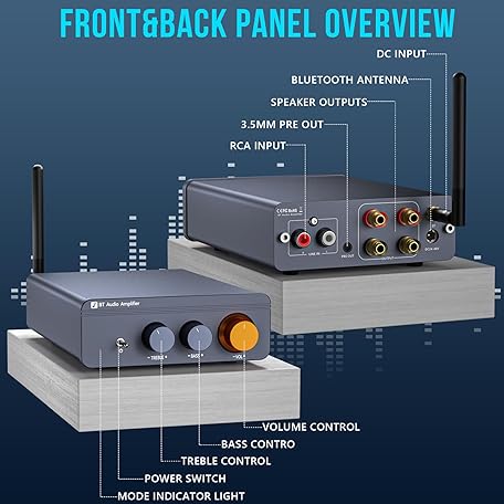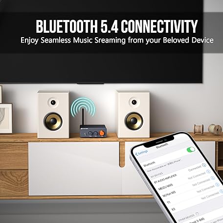 Bluetooth 5.4 Amplifier, 300W x2 Wireless Mini Amplifier Home Audio Stereo, TPA3255 2 Channel Class d amp Integrated Receiver with Bass Treble Control for Passive Speakers