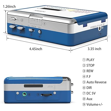 Thông tin sản phẩm Bluetooth Cassette Player with Headphone, Tape Player Bluetooth Output to Headphone/Speaker,Walkman Portable Cassette Tape Player 2 AA Battery or USB Power Supply, 3.5mm Headphone Jack