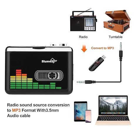 Thông tin sản phẩm BlumWay Portable Cassette Recorder Player, Audio Music Cassette Tape to Digital Converter Player with Earphone, No Need Computer