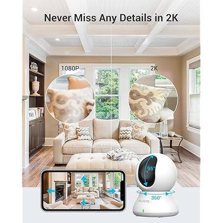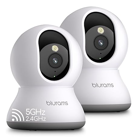 Thông tin sản phẩm blurams 5G Cameras for Home Security, 2K Pet Camera with Phone App, 360° PTZ Indoor Camera w/Dual-Band WiFi6, Free Human/Motion/Sound Detection, 2-Way Talk, Night Vision, Works with Alexa, 2Pack