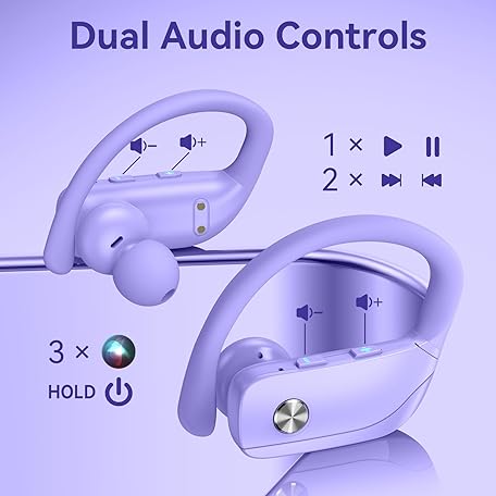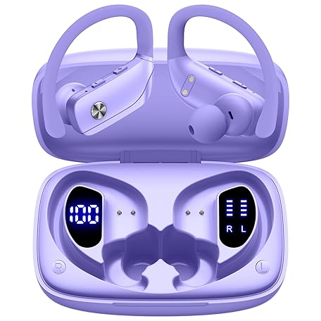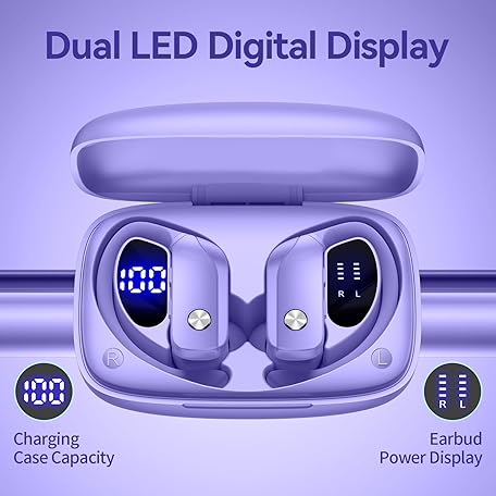 Sản phẩm bmani Ear Buds Wireless Earbuds Bluetooth Headphones with 80H Playtime LED Display Case, Over-Ear Hook with Mic, Stereo Sound, Easy Button Controls, Sports Earphones for Running Workout Gym Purple đang được bán với giá ưu đãi là $28.3291 tại nước Mỹ.