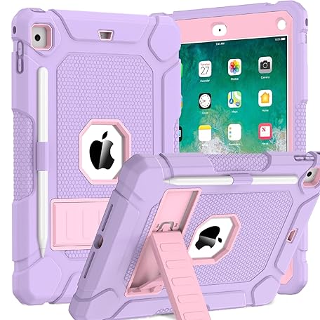 BMOUO Case for iPad 6th 5th Generation (iPad 9.7 inch, 2018/2017), Shockproof Protective iPad 9.7 Case with Built-in Stand/Pencil Holder for iPad 6th/5th Gen, Air 2, Light Purple