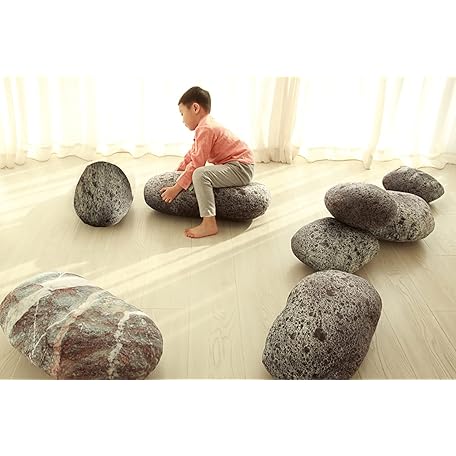 BNCKTRD Extra Large Rock Cobblestone Throw Pillow Realistic Nature-Inspired Living Stones Pebble Pillows 3D Creative Floor Stuffed Floor Pouf Cushion Pack of 7 LSPPW-02