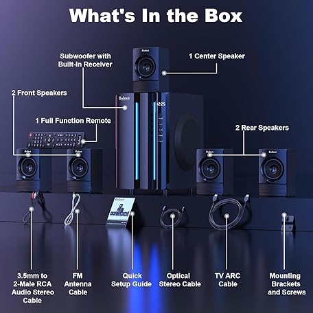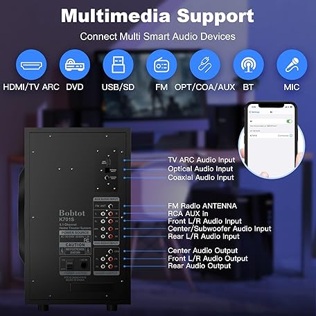Thương hiệu Bobtot là cái tên nổi tiếng được rất nhiều khách hàng trên thế giới chọn lựa. Với kiểu dáng đẹp mắt, sang trọng, sản phẩm Bobtot Surround Sound Systems Home Theater System - 800 Watts Peak Power 6.5" Subwoofer 5.1/2.1 Wired Stereo Speakers Strong Bass with HDMI ARC Optical AUX Bluetooth Input là sự lựa chọn hoàn hảo nếu bạn đang tìm mua một món cho riêng mình.