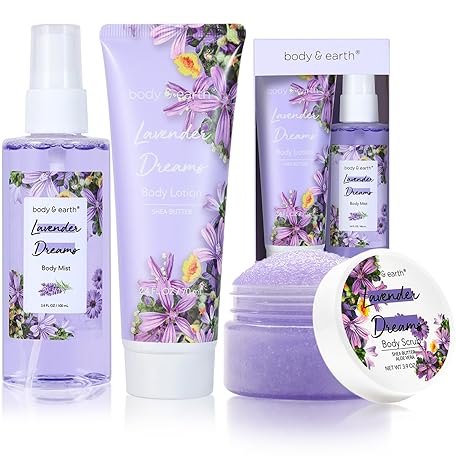 Thông tin sản phẩm BODY & EARTH Body Mist Gift Set - Spa Gifts for Women, Perfume, Body Lotion, and Body Scrub in a Lavender Dreams Box- Perfect Birthday Gifts for Moms, and Special Occasions,Unique Gift Ideas for Her
