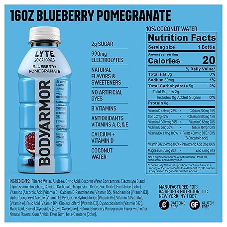 Thông tin sản phẩm BODYARMOR LYTE, Blueberry Pomegranate, Electrolyte Drink, 20 Calories, 16 Fl Oz Bottles (12 Pack), Coconut Water Sports Drink, Natural Flavor & B Vitamins
