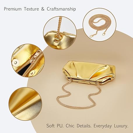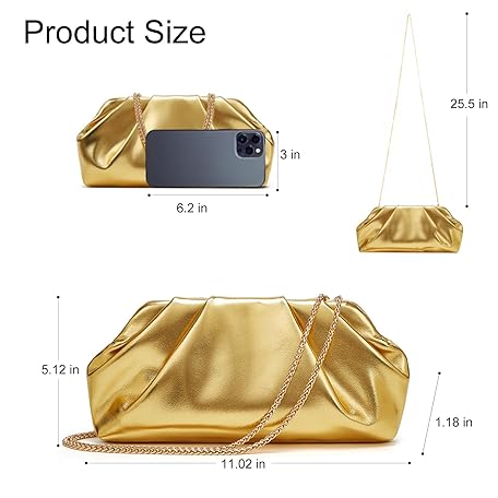 Boguyuehu Clutch Purses for Women – Elegant Pleated Soft PU Leather Evening Bag with Detachable Chain, Ideal for Weddings & Parties