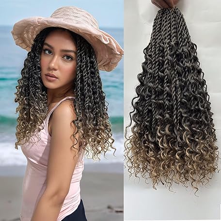 Boho Island Twist Crochet Hair 8 Packs 18 Inch Pre-Looped Goddess Senegalese Twist Crochet Hair with Curly Ends Ombre Boho Style Braids for Women T1B/27#
