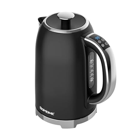 BOHOME Electric Kettle, 1.7L/1500W, Stainless Steel, Digital Touch Panel, Keep Warm Function, Auto Shutoff, BPA-Free, Hot Water Kettle for Coffee & Tea, No Plastic Contact with Water (Black)