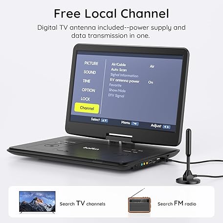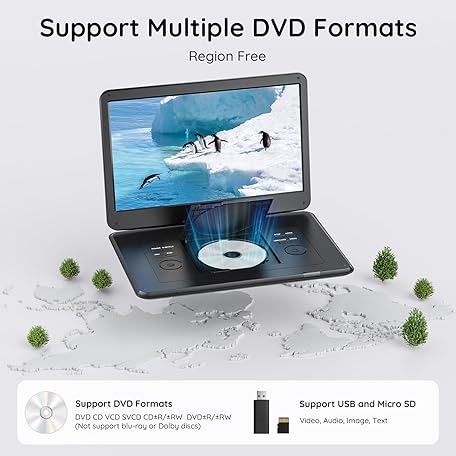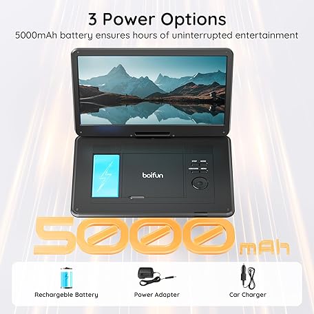 Boifun 17.5" Portable TV/DVD Player Combo with 15.6" Large HD Swivel Screen, Digital TV ATSC Tuner, Built-in Battery, Support HDMI in/USB/Micro SD/AV Out and Multiple Disc Formats, Black