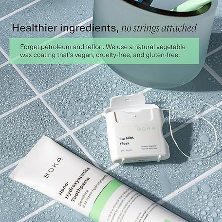 Thông tin sản phẩm Boka Ela Mint Expandable Woven Dental Floss, Made from Plant-Based Vegetable Wax, Teflon-Free, 30 Yards of Waxed Floss (Pack of 1)