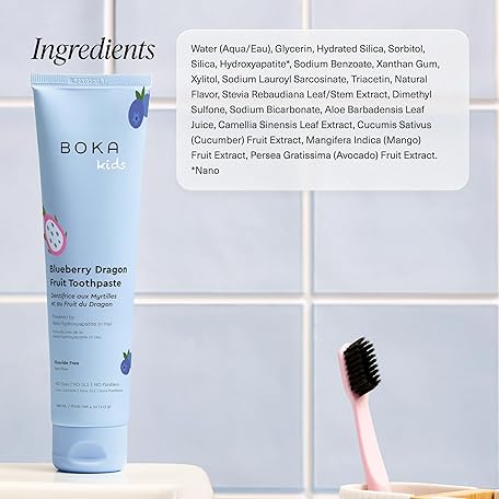 • Boka Fluoride Free Toothpaste Nano Hydroxyapatite Toothpaste - Blueberry Dragon Fruit Flavor, 4 oz 1Pk US Manufactured