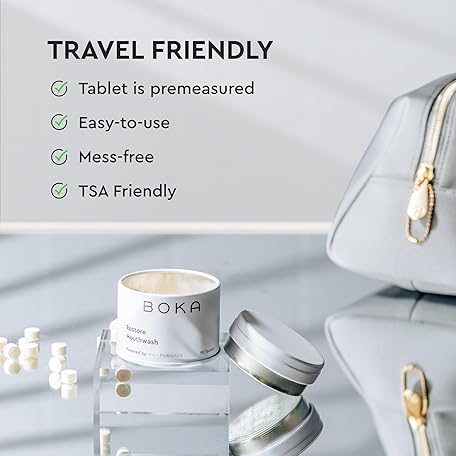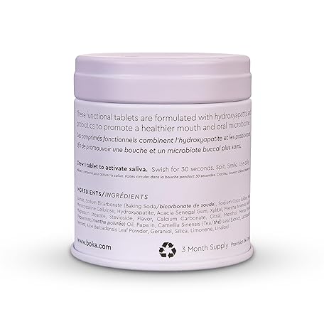 Thông tin sản phẩm Boka Travel Size Mouthwash Tablets - Hydroxyapatite, Fluoride Free & Alcohol Free - Chewable Tablets to Freshen Breath, Kill Odor Quickly - (90 Pcs, Mint)