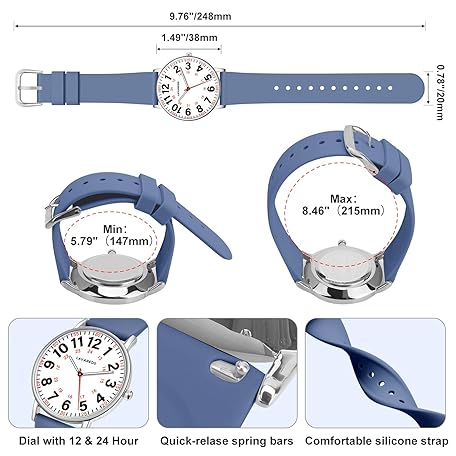Thông tin sản phẩm Bomieux Nurse Watch for Nurses Doctors Women Men,Waterproof Analog Watches with Luminous Dial and Japanese Quartz Movement,Easy to Read Military Time Watch with Second Hand, 12/24 Hours,Silicone Band