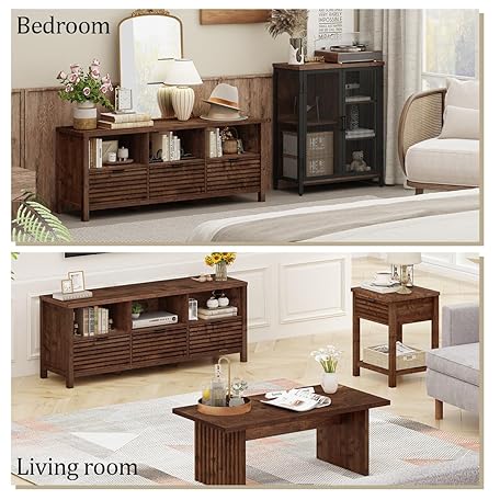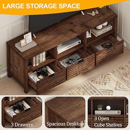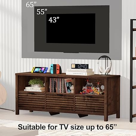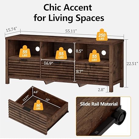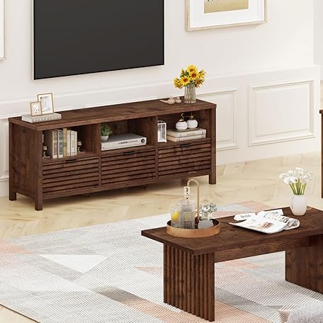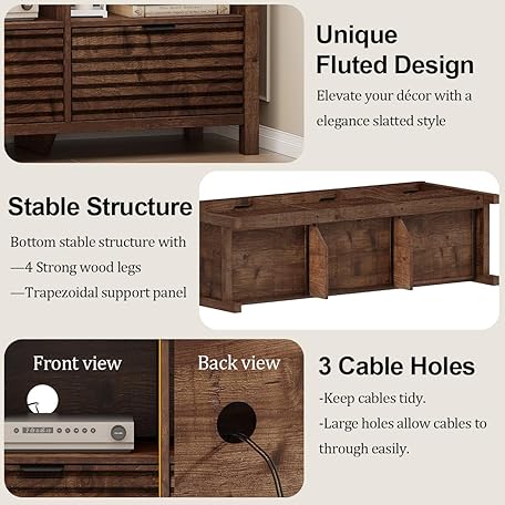 Thông tin sản phẩm BON AUGURE TV Stand, Mid Century Modern Media Console for 65/55/50 Inch TVs, Wood Fluted Entertainment Center with Storage for Living Room, Bedroom (Rustic Oak)