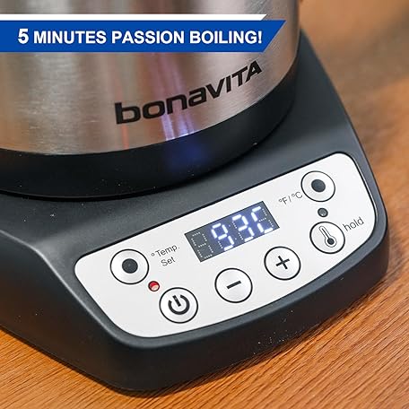 Thông tin sản phẩm Bonavita 1L Digital Variable Temperature Gooseneck Electric Kettle for Coffee Brew and Tea Precise Pour Control, 6 Preset Temps, Café or Home Use, 1200 Watt, LED Panel, Stainless Steel