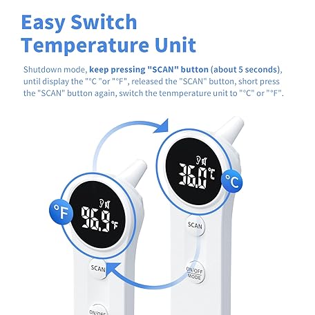 • Boncare Ear and Forehead Thermometer, 2X Accuracy Infrared Digital Thermometer for Adults and Kids, 1 Second Reading, No Touch Baby with Fever Alarm