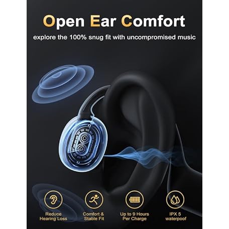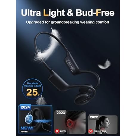 Thông tin sản phẩm Bone Conduction Headphones Lightweight Open Ear Headphones Sport Headphone with Built-in Mic Extra Comfort IPX5 Waterproof Headset for Running,Cycling,Driving