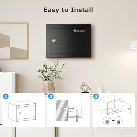Thông tin sản phẩm Bonsaii Safe Box with Key Lock, Steel Security Lock Box, 0.23 Cubic Feet, 9.06" W x 6.69" D x 6.69" H, Small Hidden Safe for Cash Jewelry