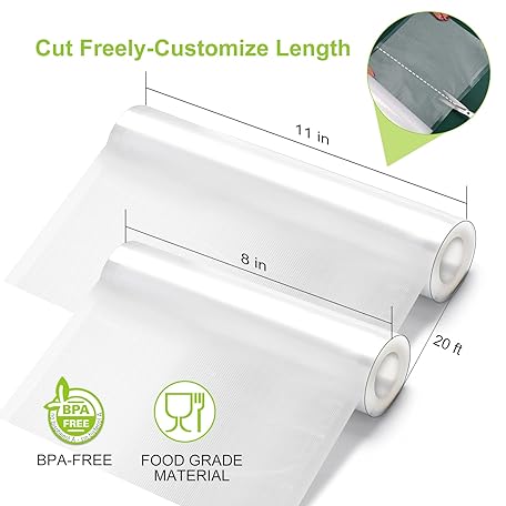 Thông tin sản phẩm Bonsenkitchen Vacuum Sealer Rolls Bags, 6 Pack 3 Rolls 11" x 20' + 3 Rolls 8" x 20' Commercial Grade BPA Free Bag Rolls, Durable Customized Size Food Vac Bags for Storage and Sous Vide Cooking VB3211