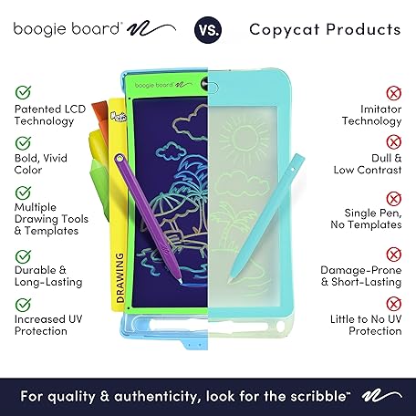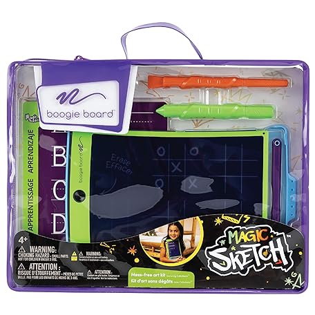 Thông tin sản phẩm Boogie Board New Magic Sketch Reusable Kids’ Creativity Kit with Carry Case, Colorburst Drawing Pad, Stylus and Texture Tools, Double-Sided Templates for Drawing, Writing, and Tracing, Ages 4+