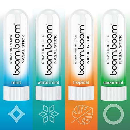 BoomBoom Nasal Stick | Vapor Flow Technology | Cool Refreshing Sensation | Natural Mood Boost | Simple Ingredients | Essential Oils + Menthol Inhaler (Mint, Wintermint, Tropical, Spearmint)