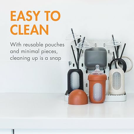 Boon Nursh Reusable Silicone Pouch Baby Bottles - Medium Flow Nipple - Silicone Baby Bottle Pouch and Nipple - Baby Feeding Essentials - Speckle - 3-6 Months - 4 Count - 8 Ounce