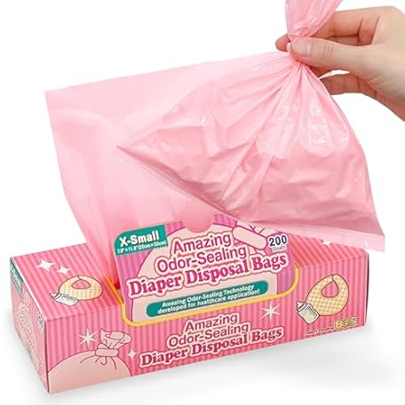 • BOS Amazing Odor Sealing Baby Diaper Disposal Bags - Durable and Unscented [Size: XS, Color: Pink] (200 count, Pack of 1) (200 Bags)
