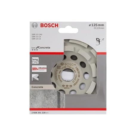 Thông tin sản phẩm BOSCH 2608201228 Diamond Grinding Head, Best for Concrete, 125mm x 22.23mm x 4.5mm, White