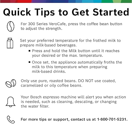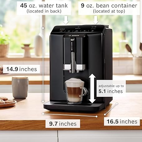 Thông tin sản phẩm BOSCH 300 Series Fully Automatic Espresso and Coffee Machine – In-Cup Frother, OneTouch Milk Drinks, 5 Drink Options, Ceramic Grinder, Easy Clean & Descale, in Black TIU20109