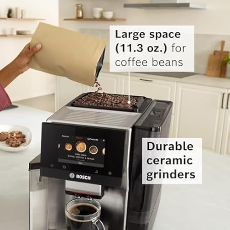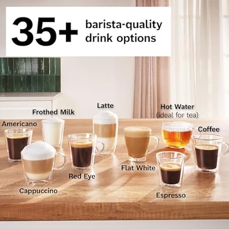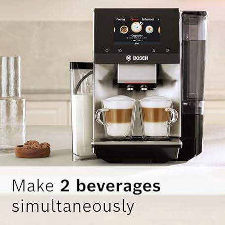 Thông tin sản phẩm Bosch 800 Series Fully Automatic Espresso and Coffee Machine – 36 Drinks with Coffee World, Cold Brew, Double Cup, Integrated Milk Container, Smart Features, in Silver TQU60307
