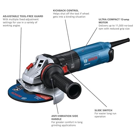 Thông tin sản phẩm BOSCH GWS14-60 6 In. Angle Grinder with Slide Switch - Compact, Powerful, and Ergonomic for Grinding and Cutting Applications