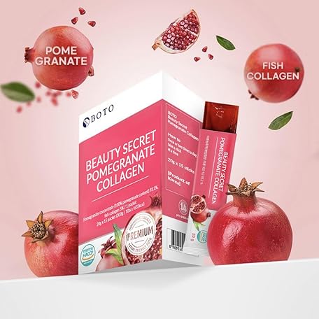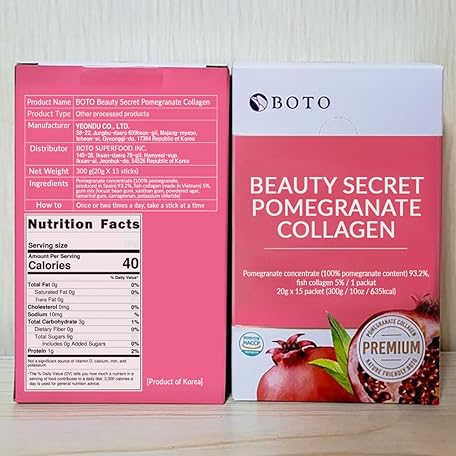 Thông tin sản phẩm BOTO Beauty Secret Pomegranate Collagen 20g - Korean Beauty Collagen Jelly Stick, Low Molecular Fish Collagen, Pomegranate Flavored - Packs of 15
