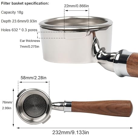 • Bottomless Portafilter 58mm Compatible For Gaggia Classic/Classic Pro | Walnut Handle
