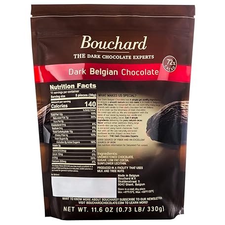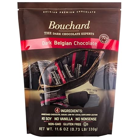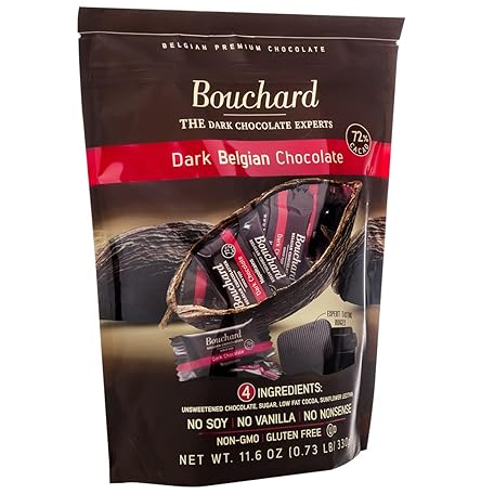 Thông tin sản phẩm Bouchard Dark Belgian Chocolate (72% Cacao) | Individually Wrapped in Resealable Bag | No Soy, No Vanilla, No Nonsense | Non-GMO, Gluten Free, OU-D Kosher
