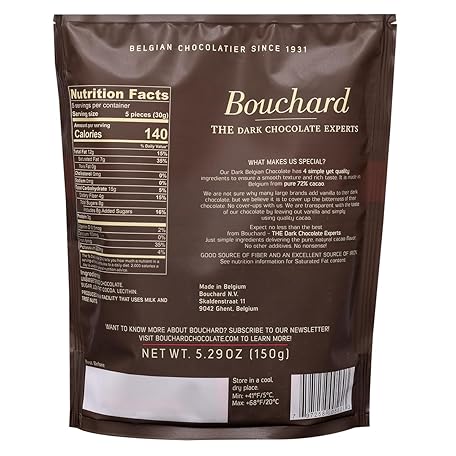 Thương hiệu Bouchard là cái tên nổi tiếng được rất nhiều khách hàng trên thế giới chọn lựa. Với kiểu dáng đẹp mắt, sang trọng, sản phẩm Bouchard Premium Belgian Dark Chocolate with 72% Cacao (5.29 OZ / 150g) là sự lựa chọn hoàn hảo nếu bạn đang tìm mua một món cho riêng mình.