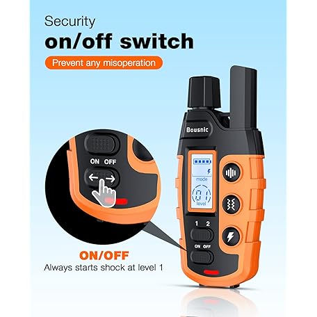 Thông tin sản phẩm Bousnic Dog Shock Collar - 3300Ft Dog Training Collar with Remote for 5-120lbs Small Medium Large Dogs Rechargeable Waterproof e Collar with Beep (1-8), Vibration(1-16), Safe Shock(1-99) (Orange)