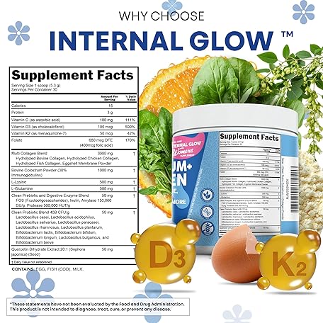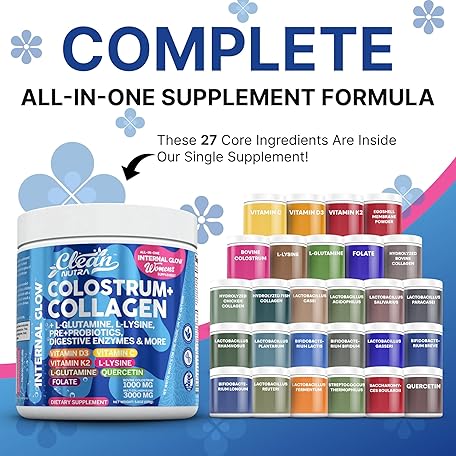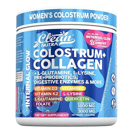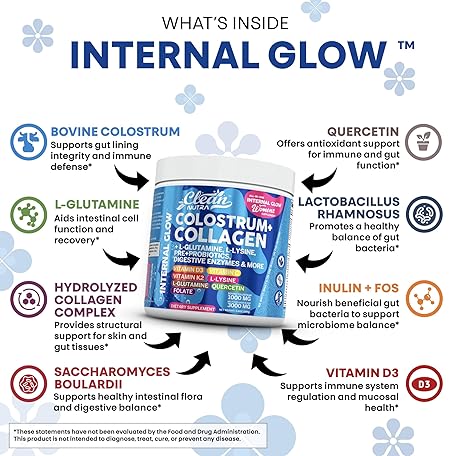 Sản phẩm Bovine Colostrum Powder + Collagen Peptides with L-Glutamine L-Lysine Prebiotics Probiotics Digestive Enzymes Vitamin D K2 C Quercetin & Folate | Gut Health Supplement Internal Glow by Clean Nutra đang được bán với giá ưu đãi là $32.6455 tại nước Mỹ.